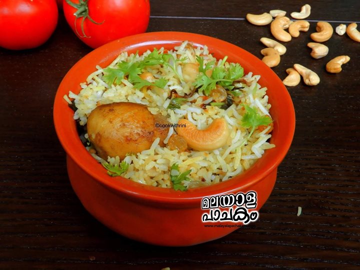 ചിക്കൻ,ചോറ്,മല്ലിയില,പുതിനയില,വറുത്ത സവോള ,കശുവണ്ടി,കിസ്മിസ് ഈ ഓർഡർ-ൽ ലയർ ചെയ്യുക.മുകളിലേക്ക് അല്പം റോസ് വാട്ടർ കൂടി ഒഴിക്കുക.നന്നായി കവർ ചെയ്തു ചെറു തീയിൽ 20-30 മിനിറ്റ് ധം ചെയ്തെടുക്കുക.